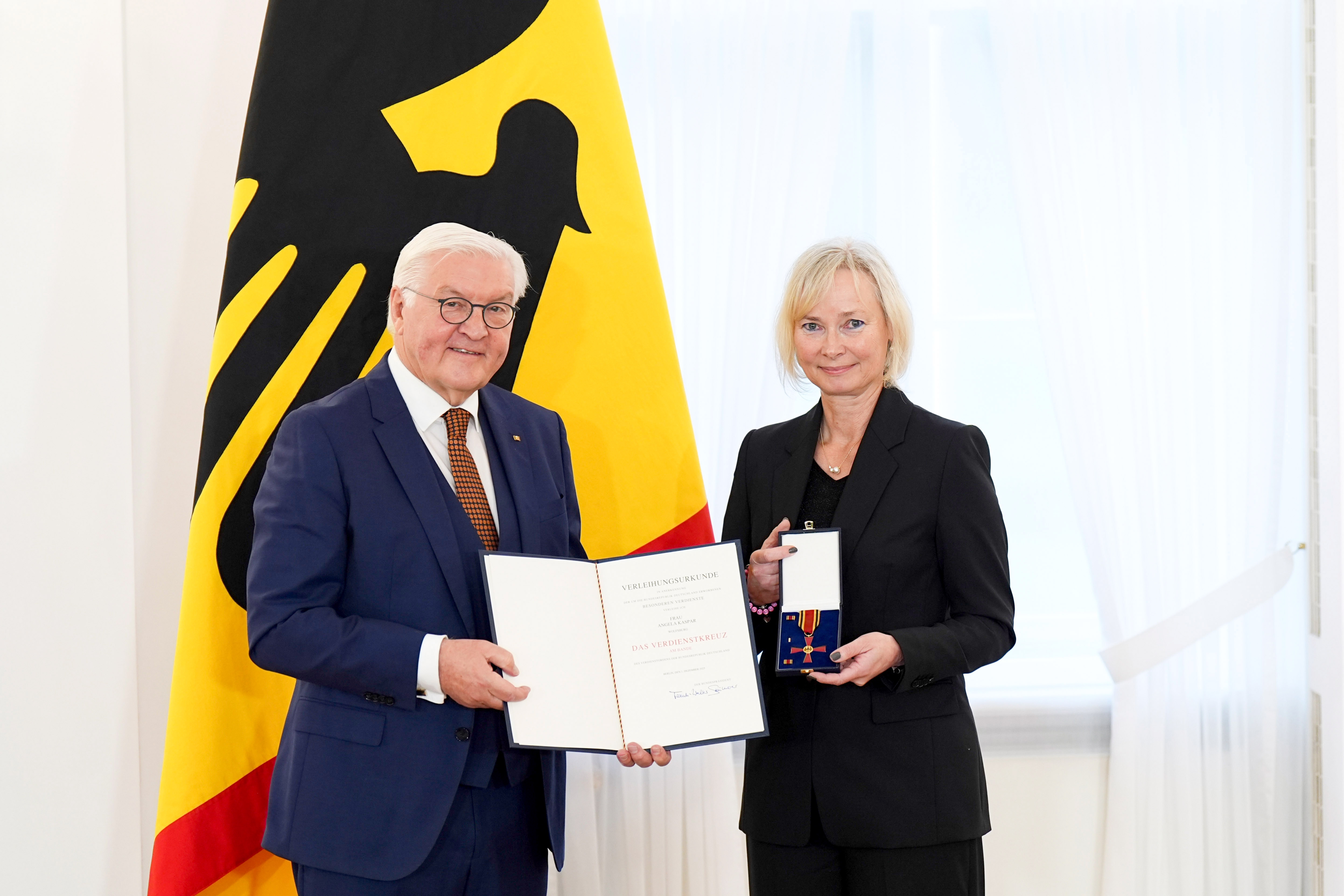 Bundespräsident Frank-Walter Steinmeier hat Angela Kaspar, Vorstandsvorsitzende der Volkswagen Belegschaftsstiftung und Koordinatorin für soziale Projekte beim Konzernbetriebsrat von Volkswagen, mit dem Verdienstorden der Bundesrepublik Deutschland – umgangssprachlich auch Bundesverdienstkreuz genannt – ausgezeichnet. Die Ehrung fand anlässlich des Tages des Ehrenamtes am 1. Dezember im Berliner Schloss Bellevue statt. Kaspar wurde für ihr herausragendes soziales Engagement gewürdigt.